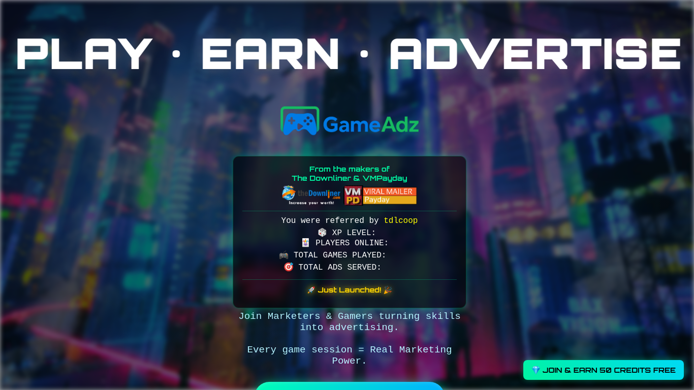 A web3 gaming platform that is free to join, you earn bitcoin based on time spent playing games and you earn advertising credits for viewing ads while playing games which can be used to get views to your own ads.